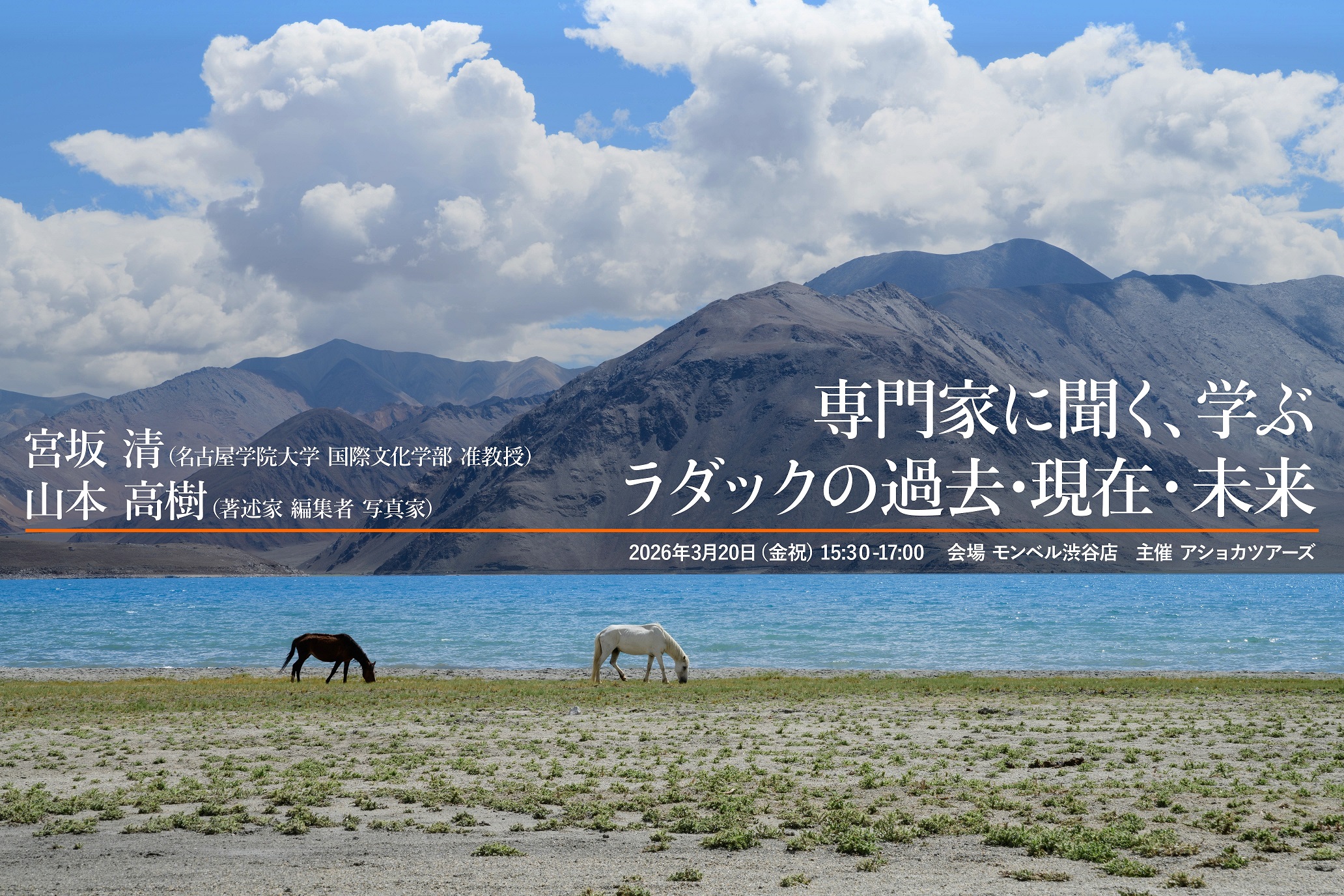 そこでこの度、専門家の先生(ラダックについて造詣の深い、文化人類学者である名古屋学院大学国際文化学部准教授 宮坂清先生)をお招きし、インド最北部のチベット文化圏ラダックとザンスカールで長年にわたって取材に取り組んでいる著述家・編集者・写真家の山本高樹さんと一緒に、昨年に引き続き、東京渋谷にあるモンベル渋谷店さんでトークショーを開催させていただくことになりました。